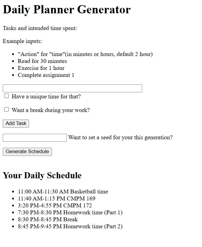 By default, the generator will randomly layout based on the tasks you add. Of course, you can also set it to a fixed time.